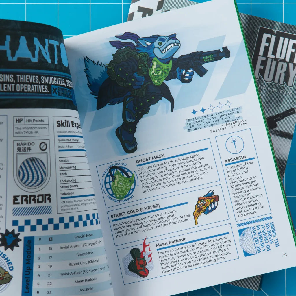 The book has everything you need to create your very own CyBear and start wrecking the system. Designed for fast sessions, little to no prep, and extra mayhem. It’s packed with rules, lore, and extra-sturdy bombproof fluff.