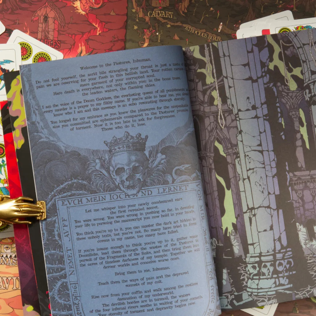 The Doomlichs play the part of damned adventurers exploring the Four Pastures pursuing the lost Fragments of the 4 Suits.